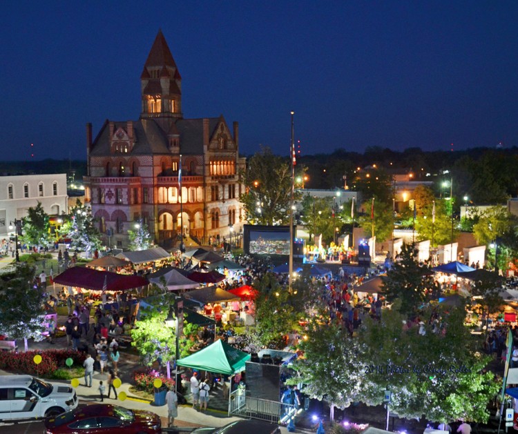Here is a photo of our downtown area, commonly referred to as the square, during one of our many events. The city often hosts concerts, movie nights, and farmers markets for the whole family to enjoy.